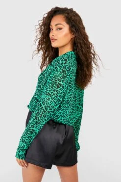 Oversize Chiffon-Hemd Mit Leopardenprint
