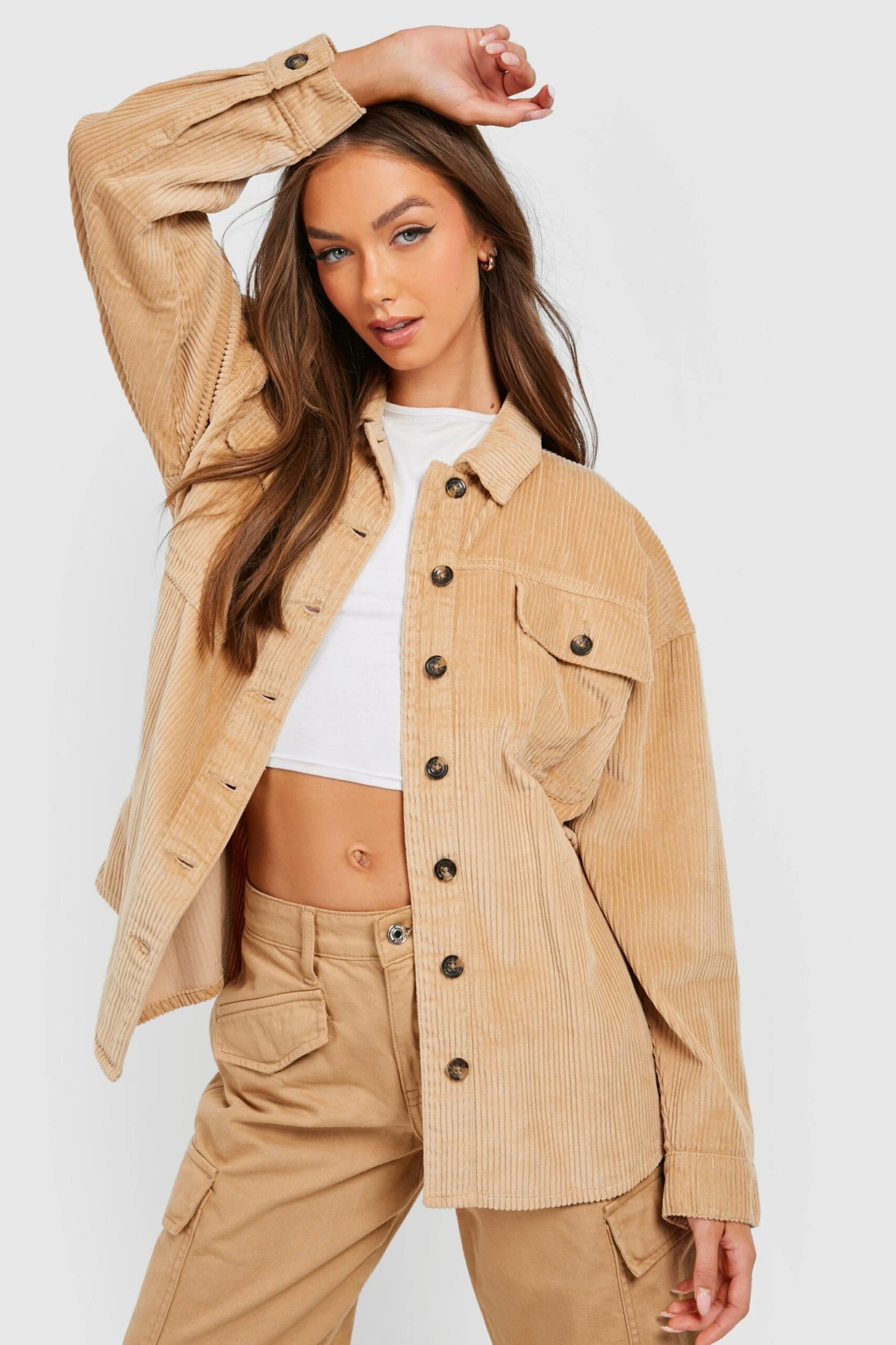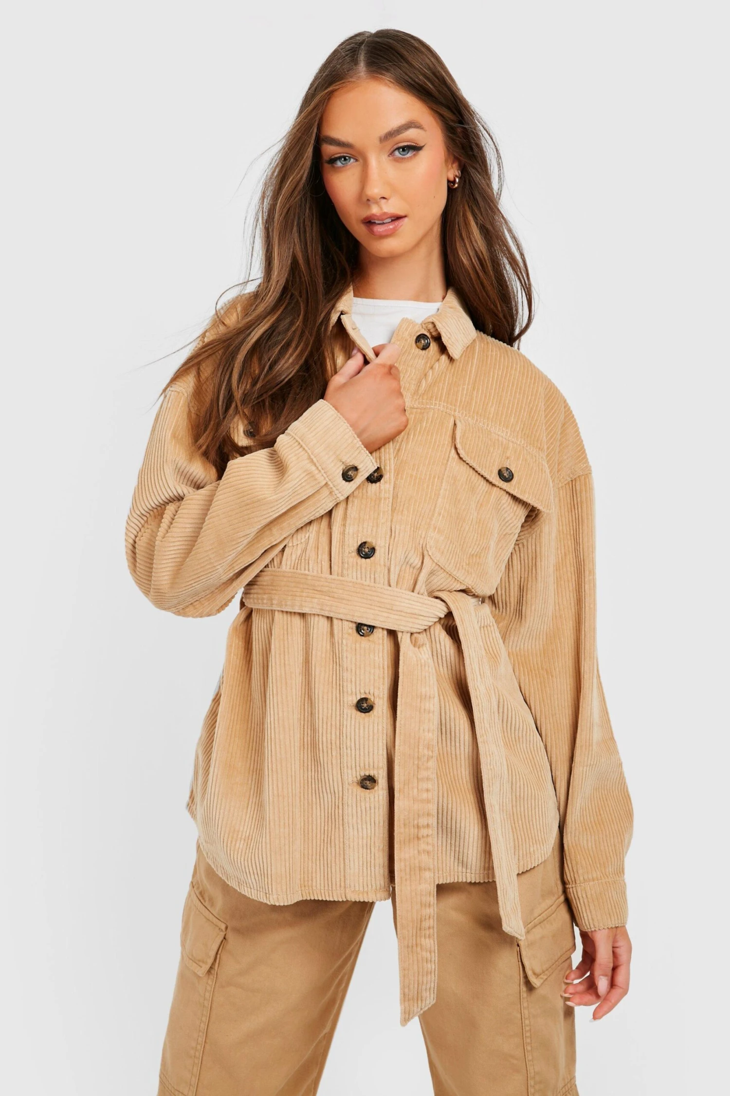 Oversize Cord-Shacket Mit Tasche Und Gürtel