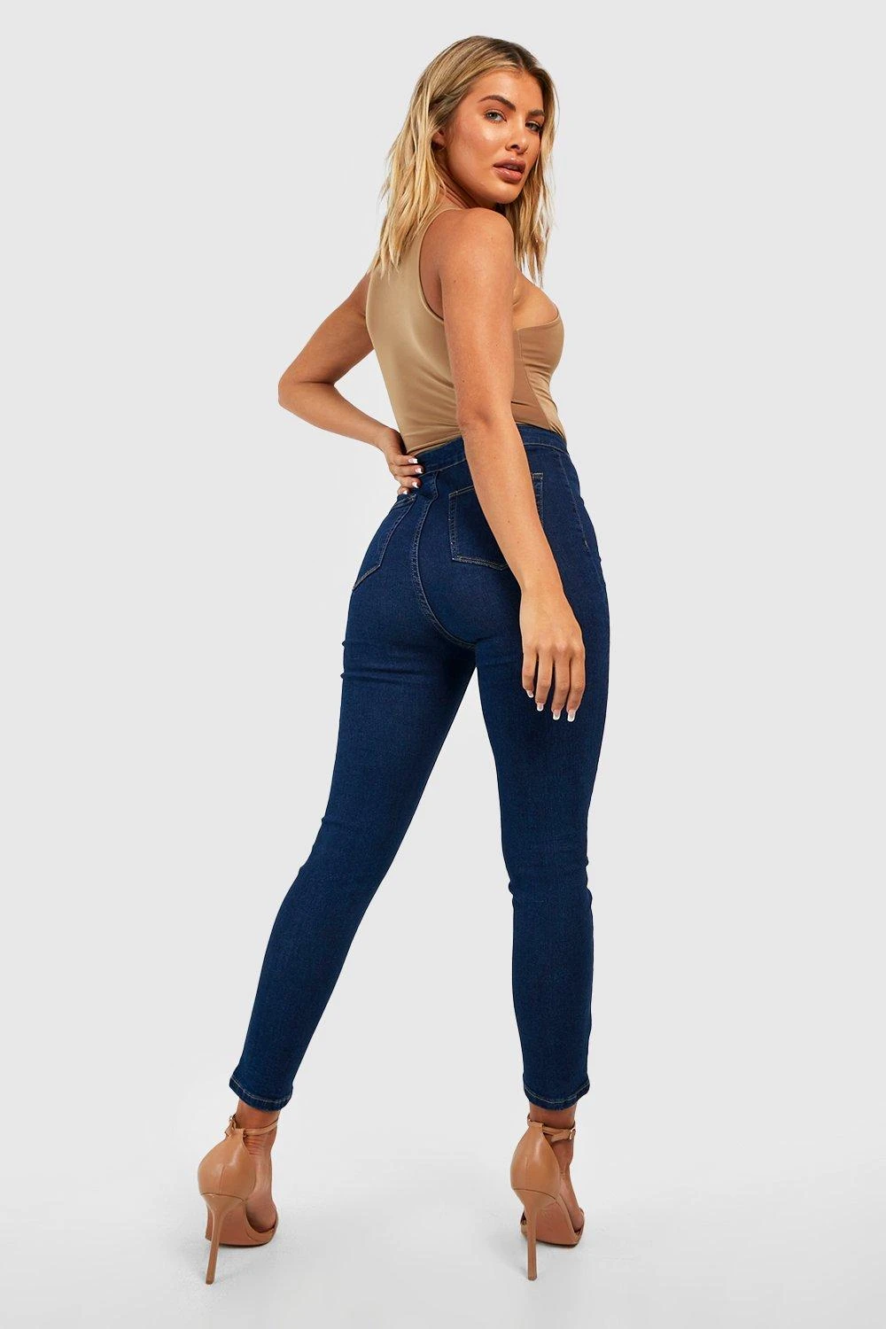 Eine Jeans mit hohem Bund sollte in keiner Garderobe fehlen. Sie sind in einer Vielzahl von coolen Styles erhältlich: wähle zwischen knöchellangen Styles, ausgestellten und weiten Beinformen, Fransensäumen und anderen modischen Details. Kombiniere ein Jeanshemd mit deiner High-Rise-Jeans für den kultigen Denim-Look. Oder style eine Body mit hochhackigen Stiefeln und Skinny Jeans für einen Abendlook, oder wähle ein klassisches T-Shirt mit klobigen Turnschuhen, für einen lässigen Look.