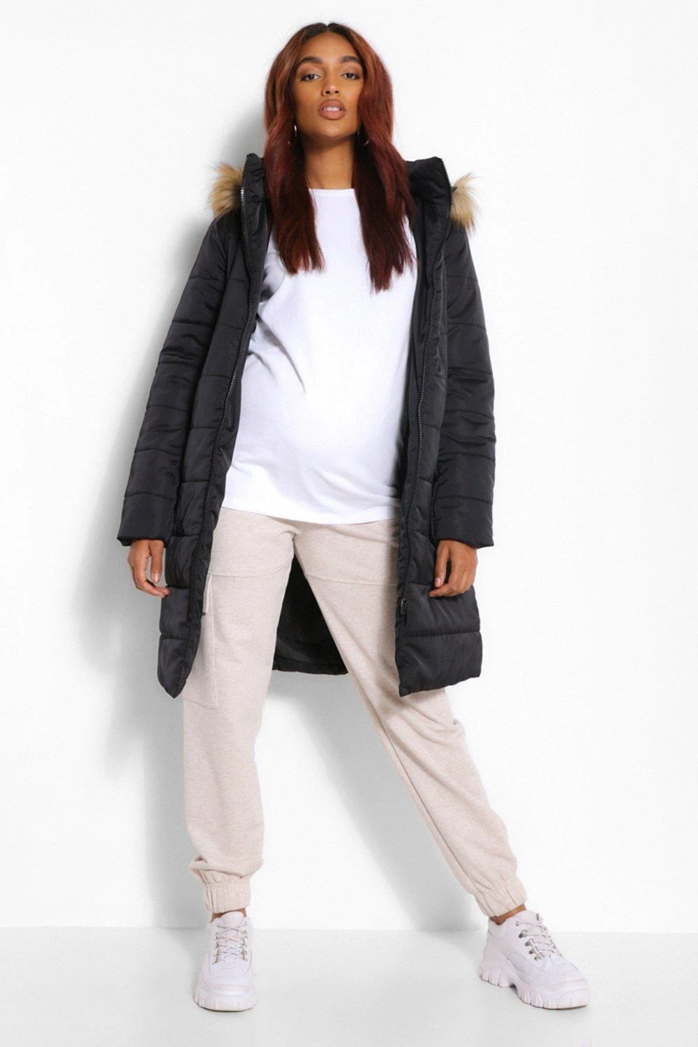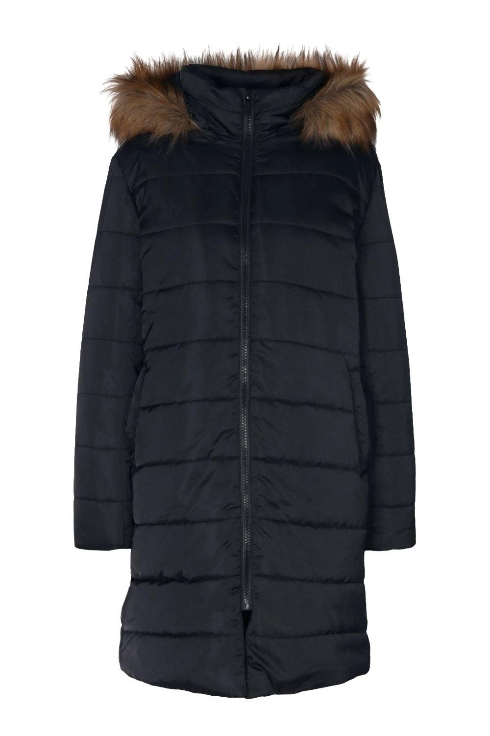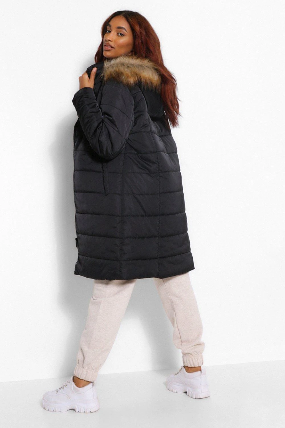Hauptmaterial: 100% Polyester, Futter: 100% Polyester, Füllung: 100% Polyester. Kunstfell: 100% Acryl. Chemische Reinigung, normaler Prozess. Model trägt Größe 38.