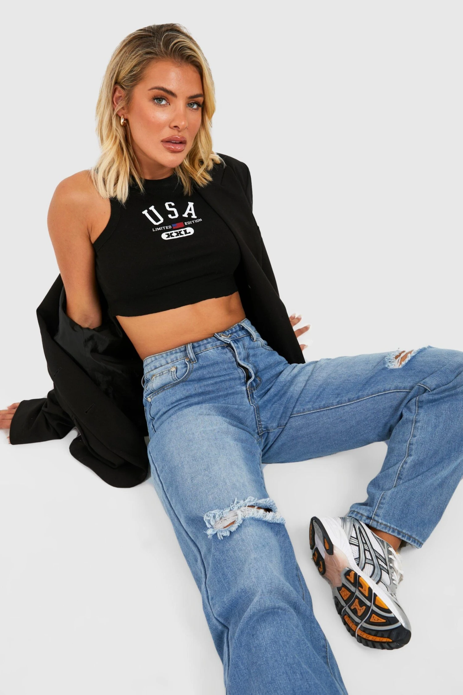 Peppe deinen Look mit einer Low-Rise-Jeans auf. Brauchst du eine Pause von der hohen Taille? Low-Waist-Jeans, das Essential der 2000er, sind ein absoluter Hingucker für lässige Outfits. Es gibt so viele Möglichkeiten, sie zu stylen: Kombiniere sie mit einem coolen Tanktop oder einem dicken Pullover und runde deinen Look mit einem cool geschnittenen Blazer ab. Hier ein Look für den morgendlichen Gang zum Kaffeetrinken: ein Rollkragenpullover, eine Low-Rise Röhrenjeans und ein paar Schnürstiefel.
